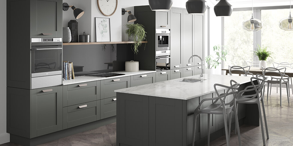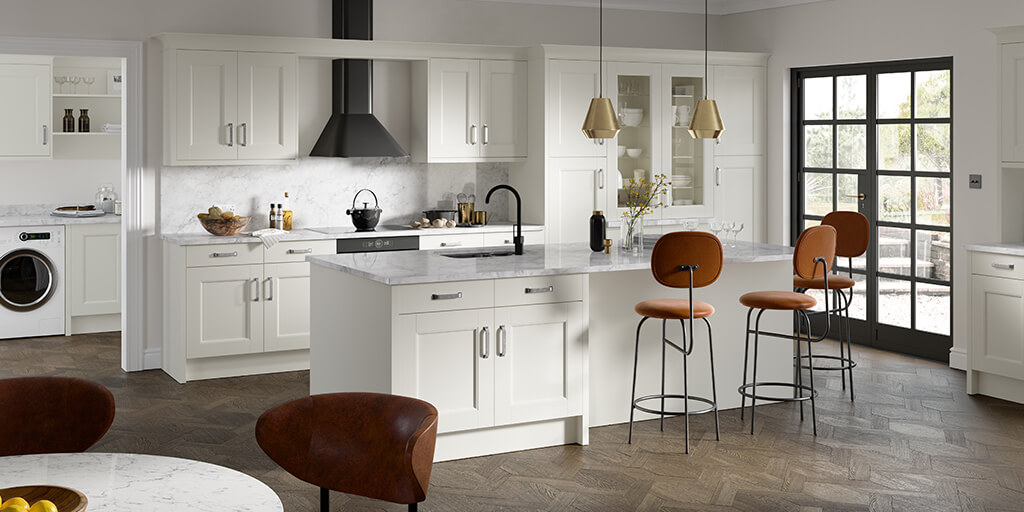 A framed panel door. Choose from broad or skinny shaker in a selection of colours. Or choose a beaded shaker in limestone for the elegant period look.